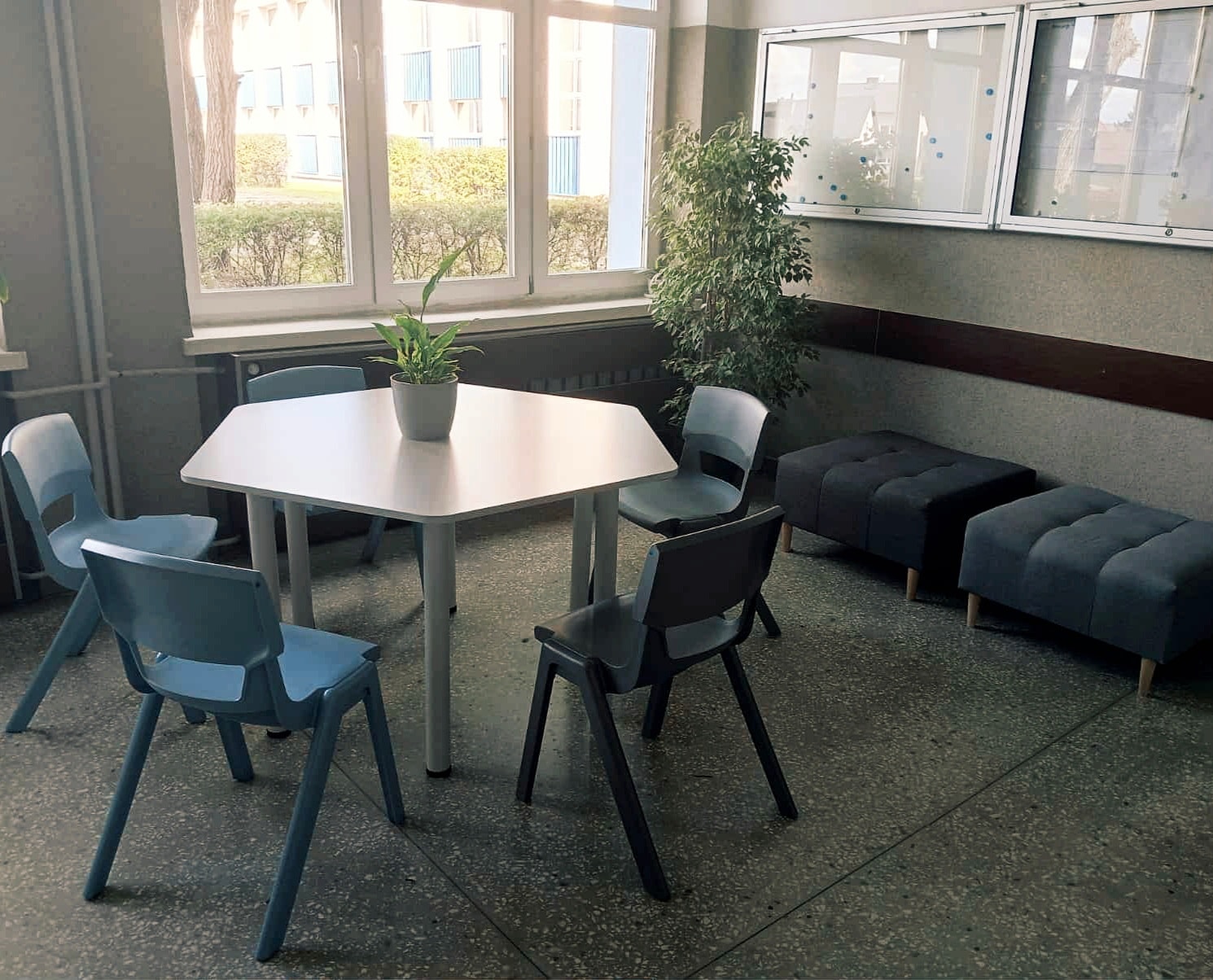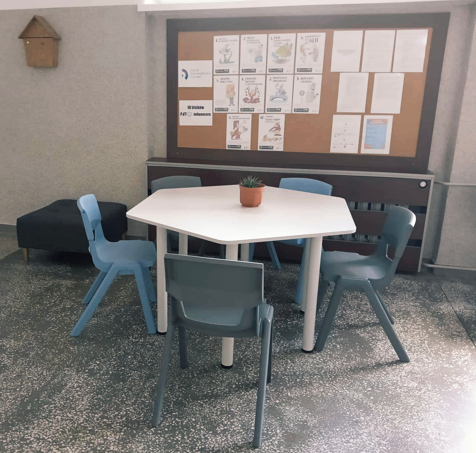 Dzięki niemu na naszych szkolnych korytarzach powstanie przytulna i funkcjonalna przestrzeń, w której uczniowie będą mogli odpocząć, porozmawiać i spędzać przerwy w miłej atmosferze.