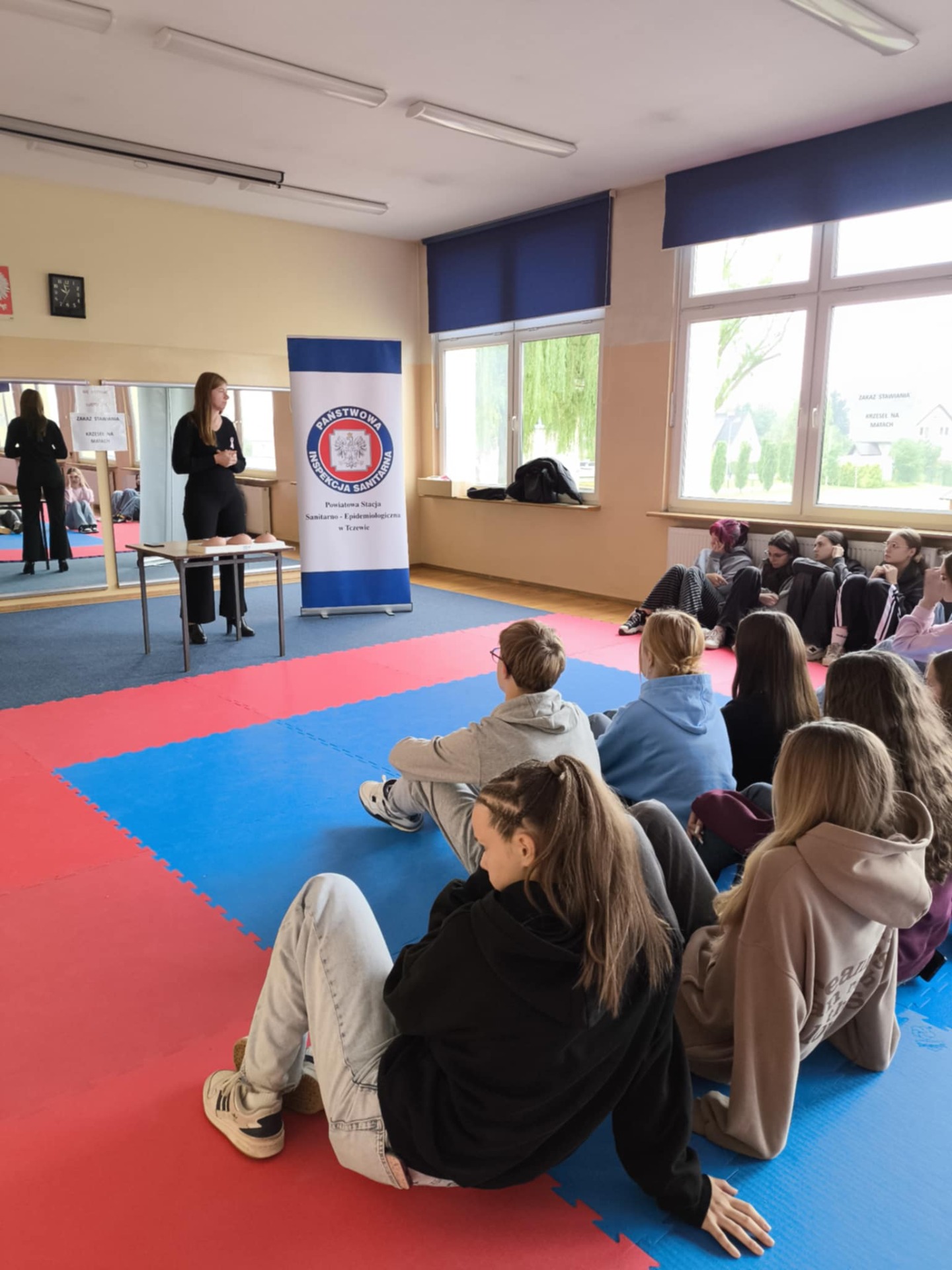 Uczniowie mieli okazję dowiedzieć się, jak duże znaczenie ma wczesne wykrywanie zmian nowotworowych, jakie czynniki mogą zwiększać ryzyko zachorowania oraz jak prawidłowo wykonywać samobadanie. Pani Hoog w przystępny sposób omówiła zarówno aspekty zdrowotne, jak i emocjonalne związane z profilaktyką chorób nowotworowych.
