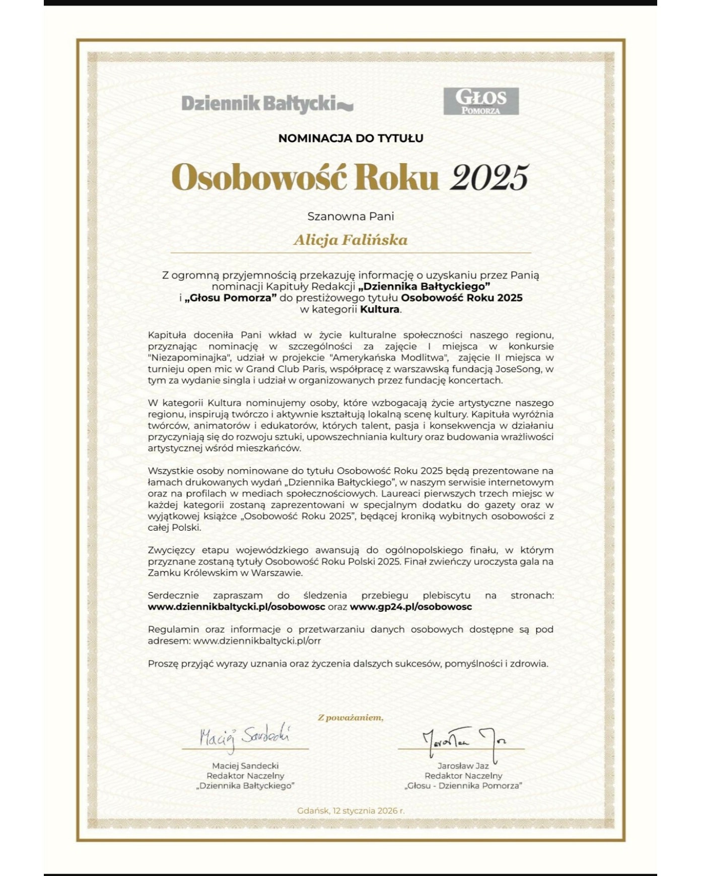 Nominacja do tytułu Osobowość Roku 2025!